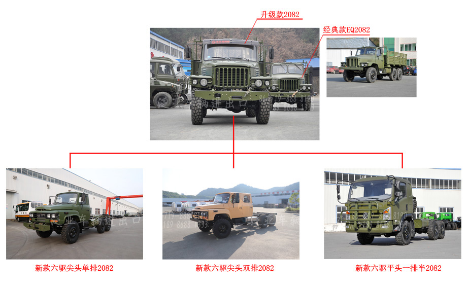 目前这款EQ2082车在东风公司里已经停产,很多配件均已绝版。我公司根据现有资源,在2018年设计出新时代的2082,并在该车的基础上设计出来多款多功能的2082。
