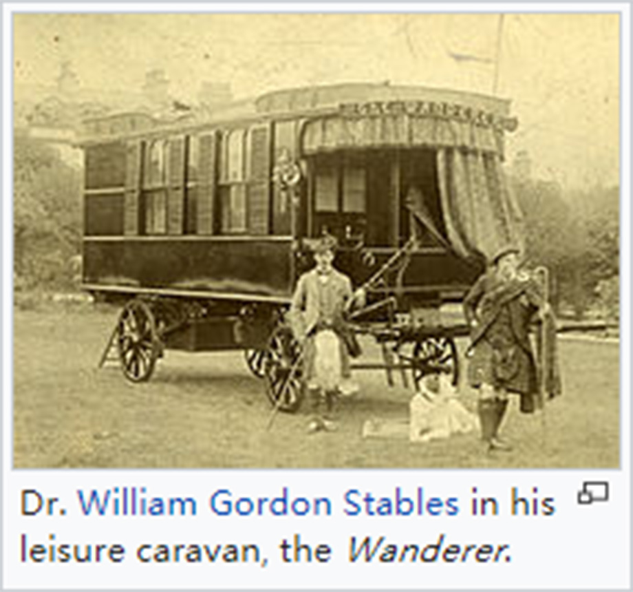在欧洲,旅行拖车和旅行车的起源可以追溯到旅行的罗曼尼人,以及将大部分时间都花在马拉旅行车上的表演者。塞缪尔·怀特·贝克(Samuel White Beker)在英国购买了一辆真正的吉普赛商队,并与1879年将其运送到塞浦路斯。1880年,布里斯托尔旅行车与马场工程公司为世界著名的的作家威廉·高登·斯特布尔斯博士制造了世界上第一台休闲拖车。青少年冒险小说的作者,他订购了"绅士大篷车"。这是一个长约18英尺(5.5m)的设计,基于他们的《圣经旅行车》,在美国狂野西部旅行的传教士使用。斯特布尔斯将其命名为“Wanderer”(流浪者),用于他在英国乡村中旅行,后来写了一本书记录他的旅行,名为《绅士吉普赛人》(The Gentleman Gypsy)。这感动了纽卡斯尔公爵(Duke of Newcastle)并委托人建造了属于他自己的旅行车(The Bohemian)波西米亚人。
