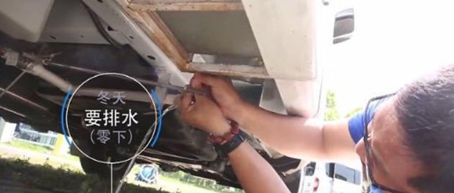 冬天出行需要注意及时清空水箱,防止温度下降,造成结冰。如果不出行的时候,切记不要存放水。