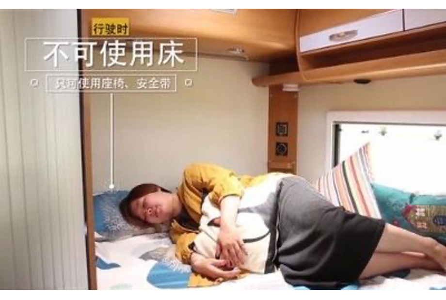 安全事故往往就是出现在这种以为安全的状态。床上随时很舒服柔软,但是紧急刹车,躺在床上的美梦也就成了一个噩梦。所以,在房车行驶过程中,还是坐在驾驶室的座椅上,系好安全带,陪在爱人家人或是朋友,与他们一同通行。