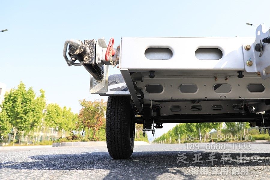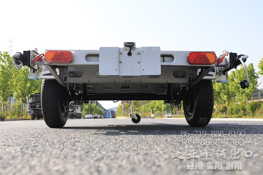 拖车底盘具有经久耐用的特点。采用高弹性实心胎,能增强拖车承载能力和使用寿命,减轻行驶过程中车辆颠簸对货物造成的损伤。