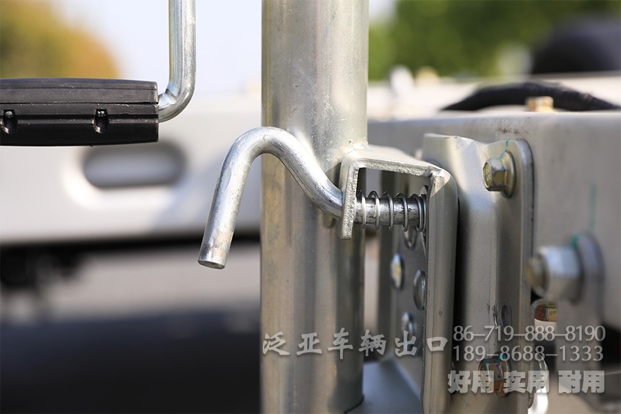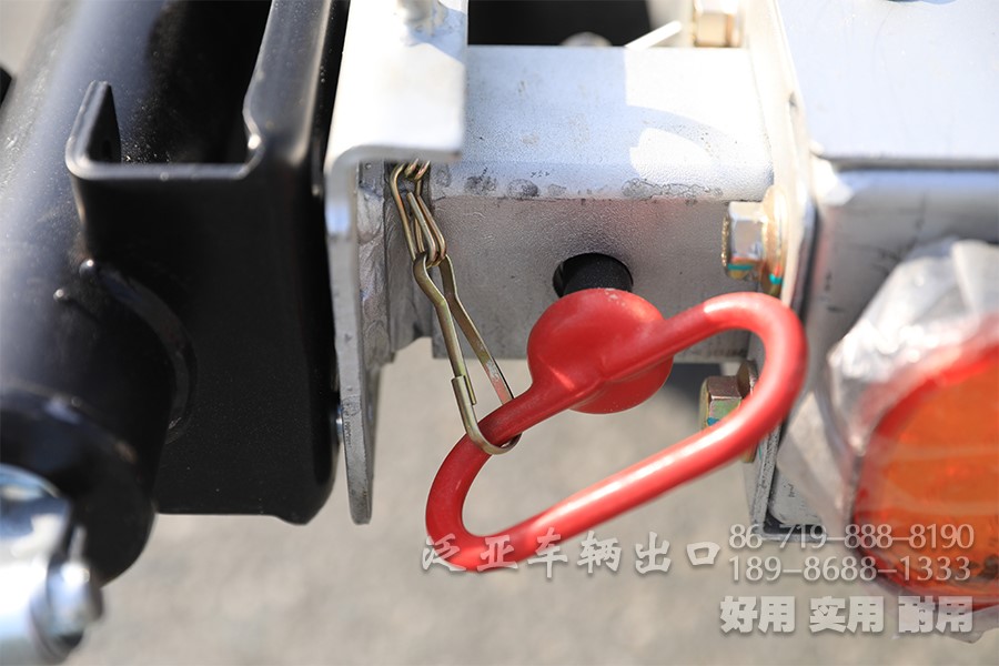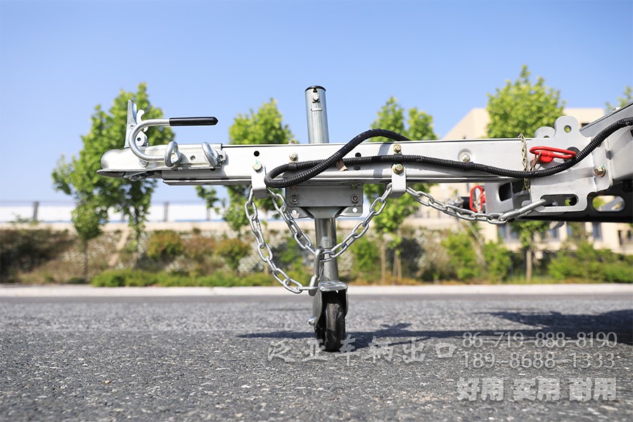前拖梁  后端旋转式90°并可固定,梁前端安装球形牵引器(美标、2英寸)和两根安全链条(镀锌),长度约925mm
