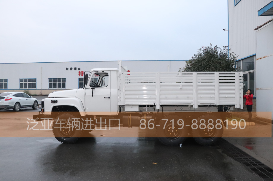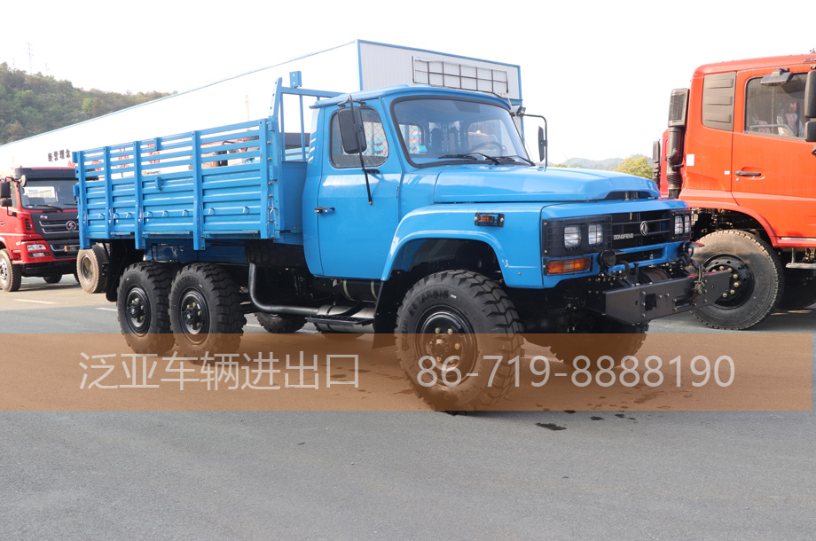 尖头六驱越野卡车2082E6D车型是利用2081E车型成熟的技术和总成,采用东风康明斯6BT5.9增压柴油发动机开发的柴油2.5吨越野汽车。 带有冷启动、副油箱、机油桶、水桶、篷布、工具箱等军用附加装置,可在-41℃环境下在驾驶室内一键启动(选装)。