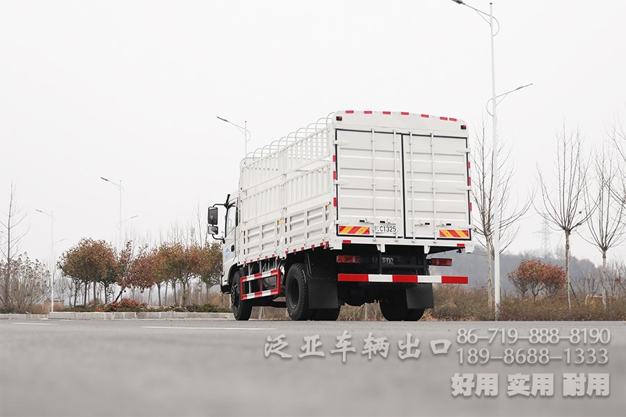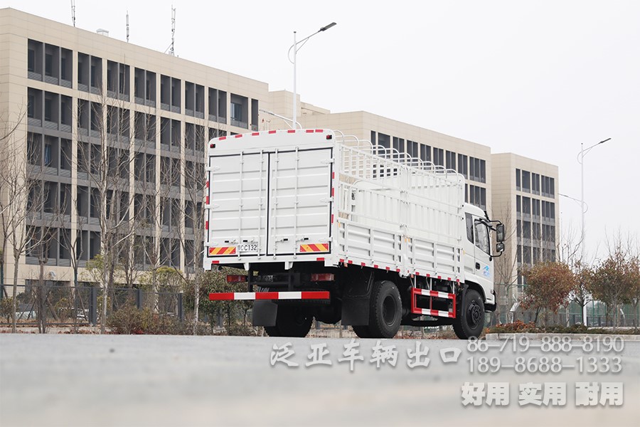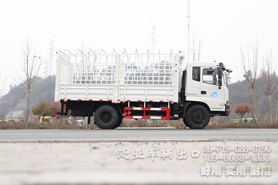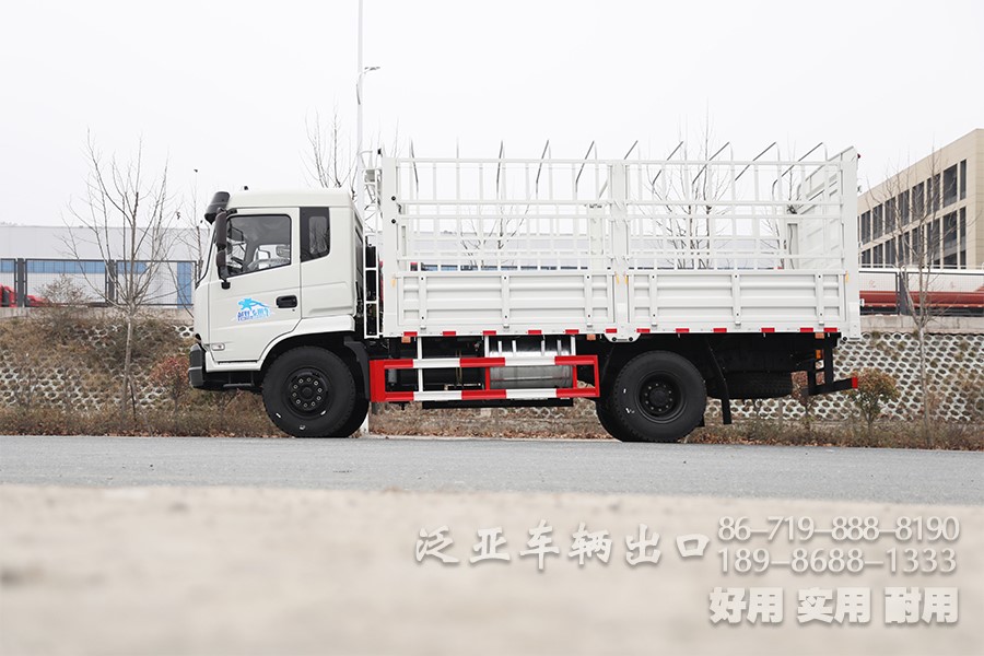 东风210马力4×2仓栏运输车_5.2米8吨中型仓栅车_高栏鹅颈式物流货运