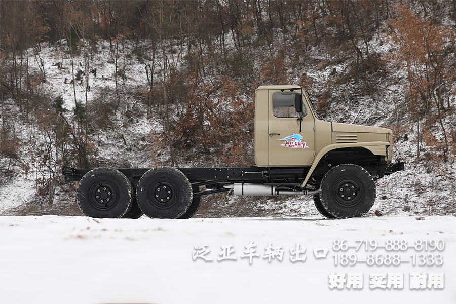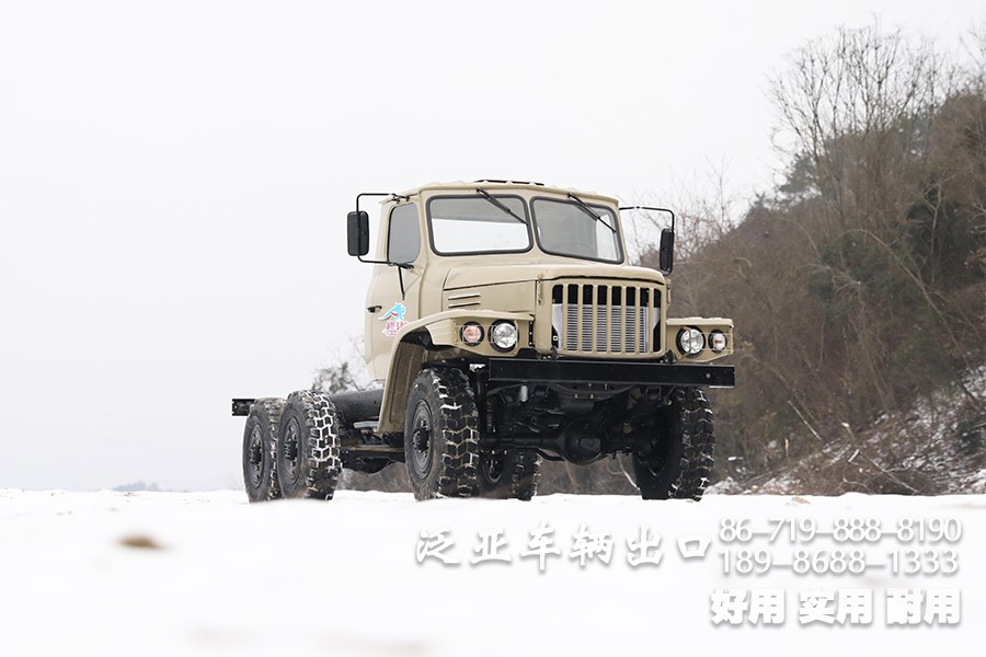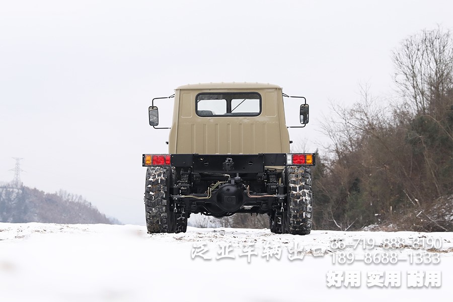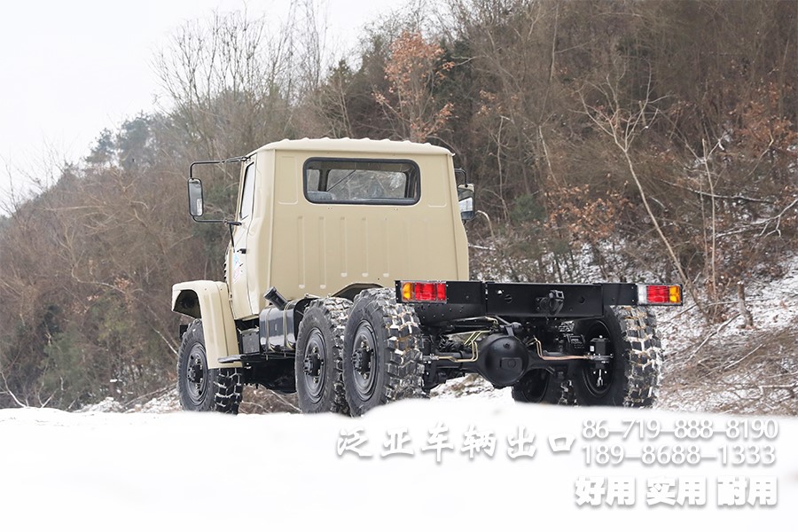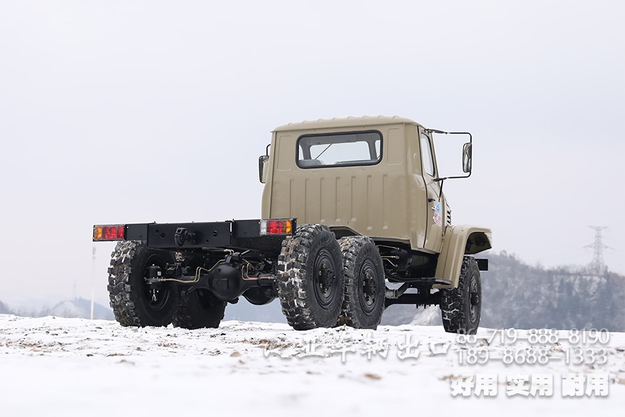 特殊配置 驾驶室后车窗带有防护网,6x6全轮驱动,专利设计,专为恶劣路况设计,可选装前置绞盘,牵引力为44100
