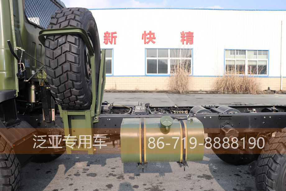 2070平头四驱越野卡车底盘选配中央充放气系统,可分别对前后桥轮胎充放气。选装绞盘。客户可根据自身情况选择相应的配置。2070平头四驱越野卡车底盘的主要性能特点如下: