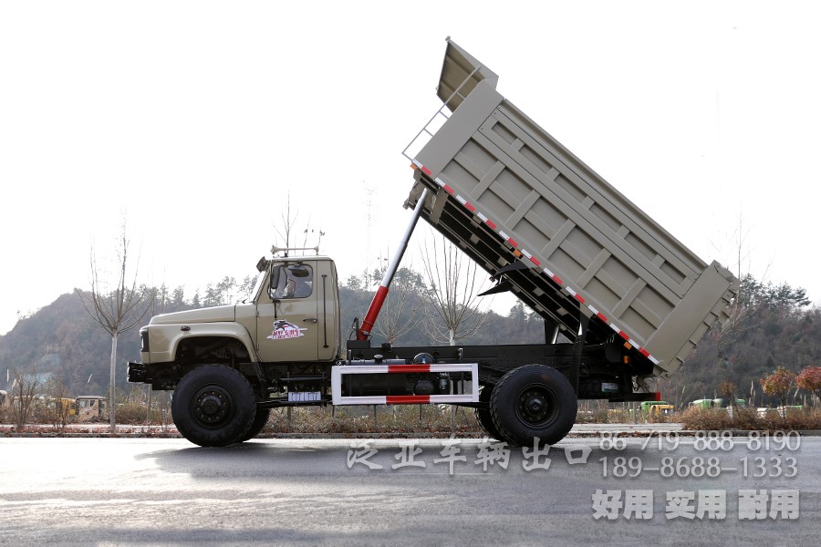 东风四驱大马力越野自卸车_东风4x4尖头自卸越野卡车_东风长头液压举升工程车