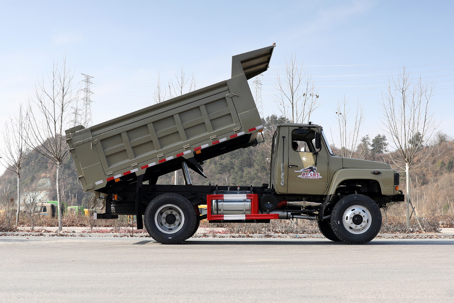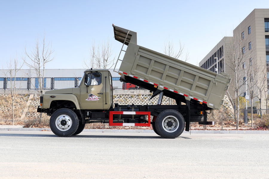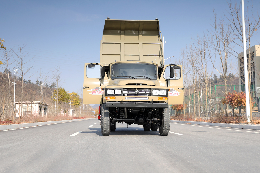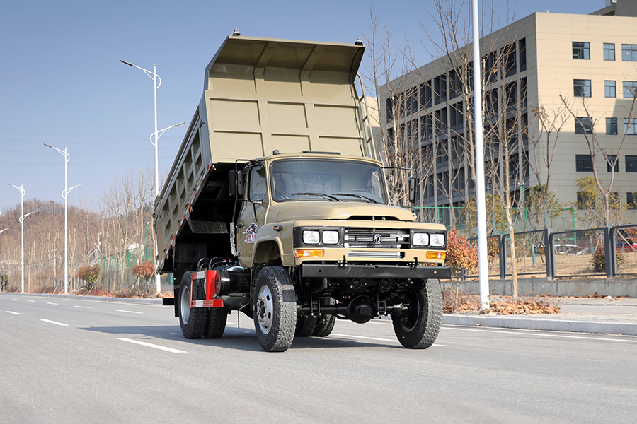 东风四驱舵灰色越野自卸车_东风EQ1093大马力越野载货自卸车