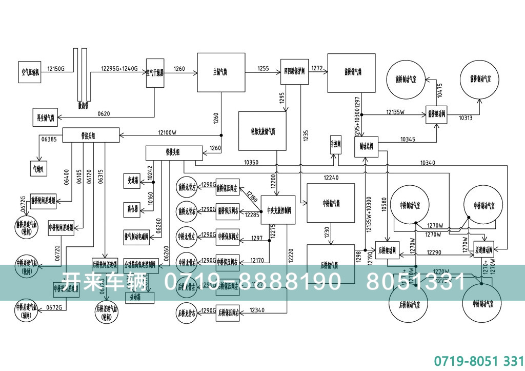 整体气路设置有快放阀、继动阀、差动继动阀、、双向阀、单向阀、干燥器、冷凝器等专业制动阀
