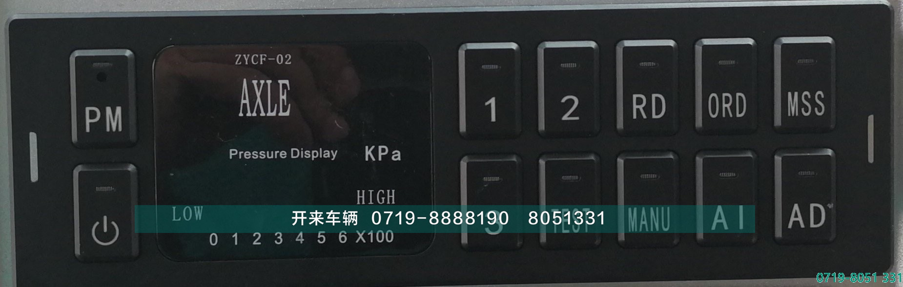 5.1.4“桥路选择区域”:数字“1桥”、“2桥”、“3桥”表示车辆1桥(前桥)、2桥(中桥)、3 桥(后桥)。该区域键为复选按键,按一次被选中,再按一次取消该键选择。 选择全车时可连续按“1桥”、“2桥”、“3桥”。取消时可也连续按“1桥”、“2桥”、“3桥”。